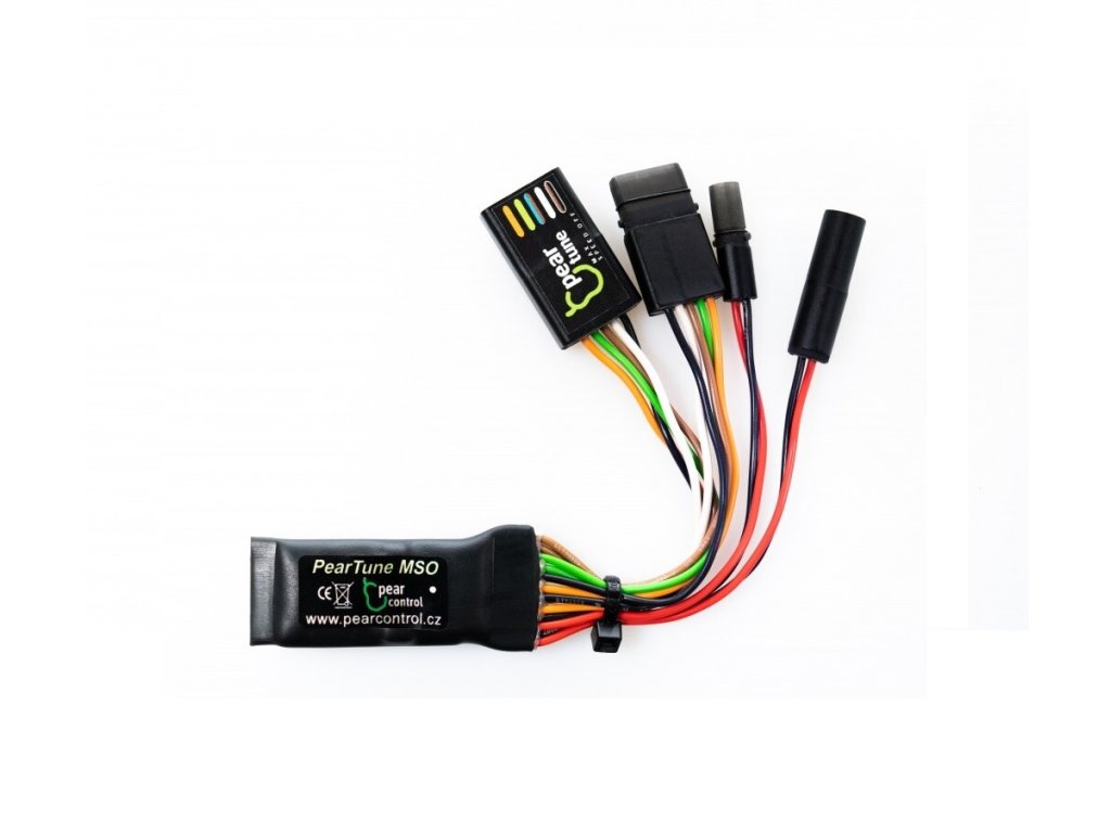 PearTune je zapojeno mezi senzor tachometru a jednotku motoru a mezi display a jednotku motoru. Jako napájení se používá napájení displeje. Veškeré údaje jako je aktuální, průměrná, maximální rychlost, ujetá vzdálenost, atd. zůstávají na displeji pravdivě zobrazovány.